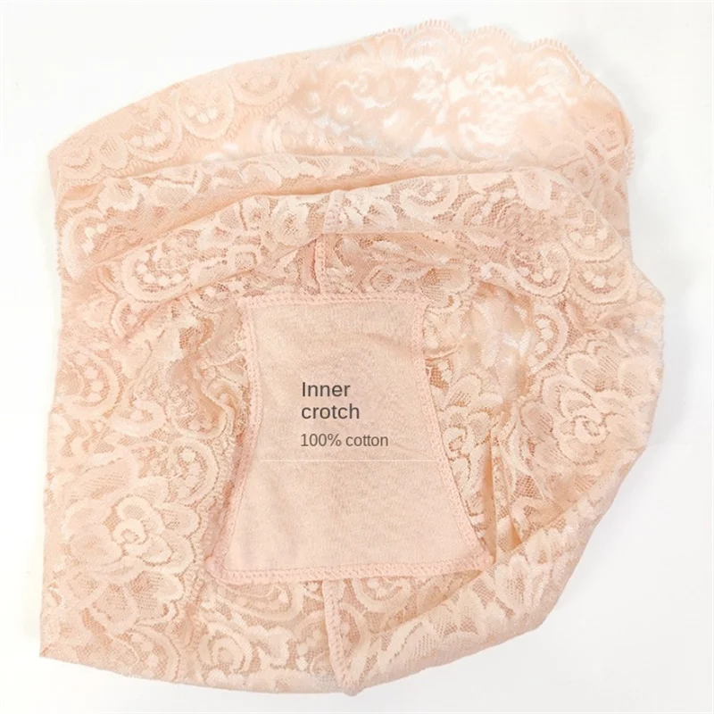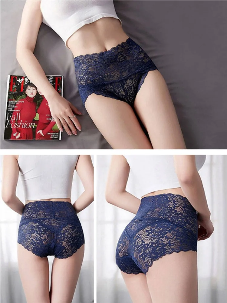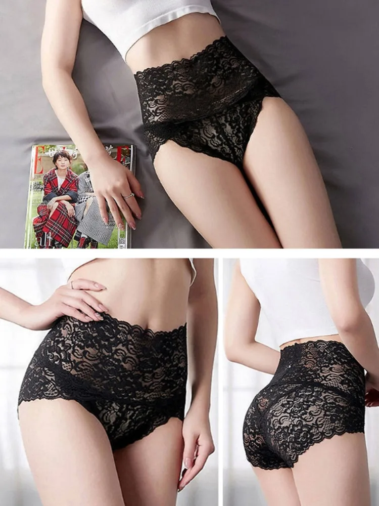 1Pc Fashion Women High Waist Plus Size Panties Lace Mesh Floral Transparent Briefs Underwear Solid Seamless Underpants Lingerie