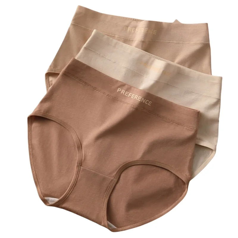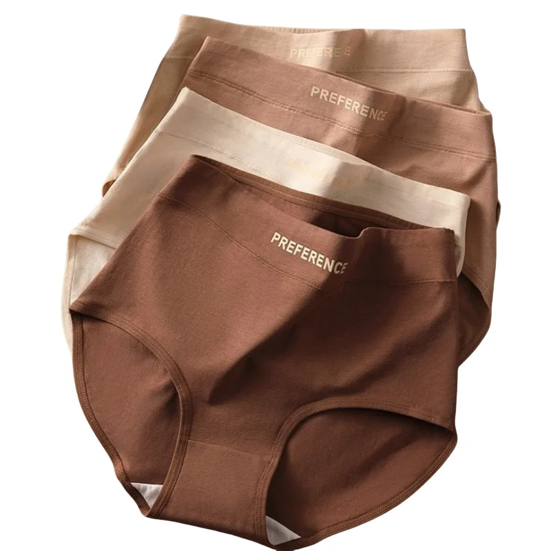 4Pcs/Set Women's Briefs Plus Size Panties High Waist Breathable Underwear Solid Color Cotton Lingerie Comfort M-XXL Panties