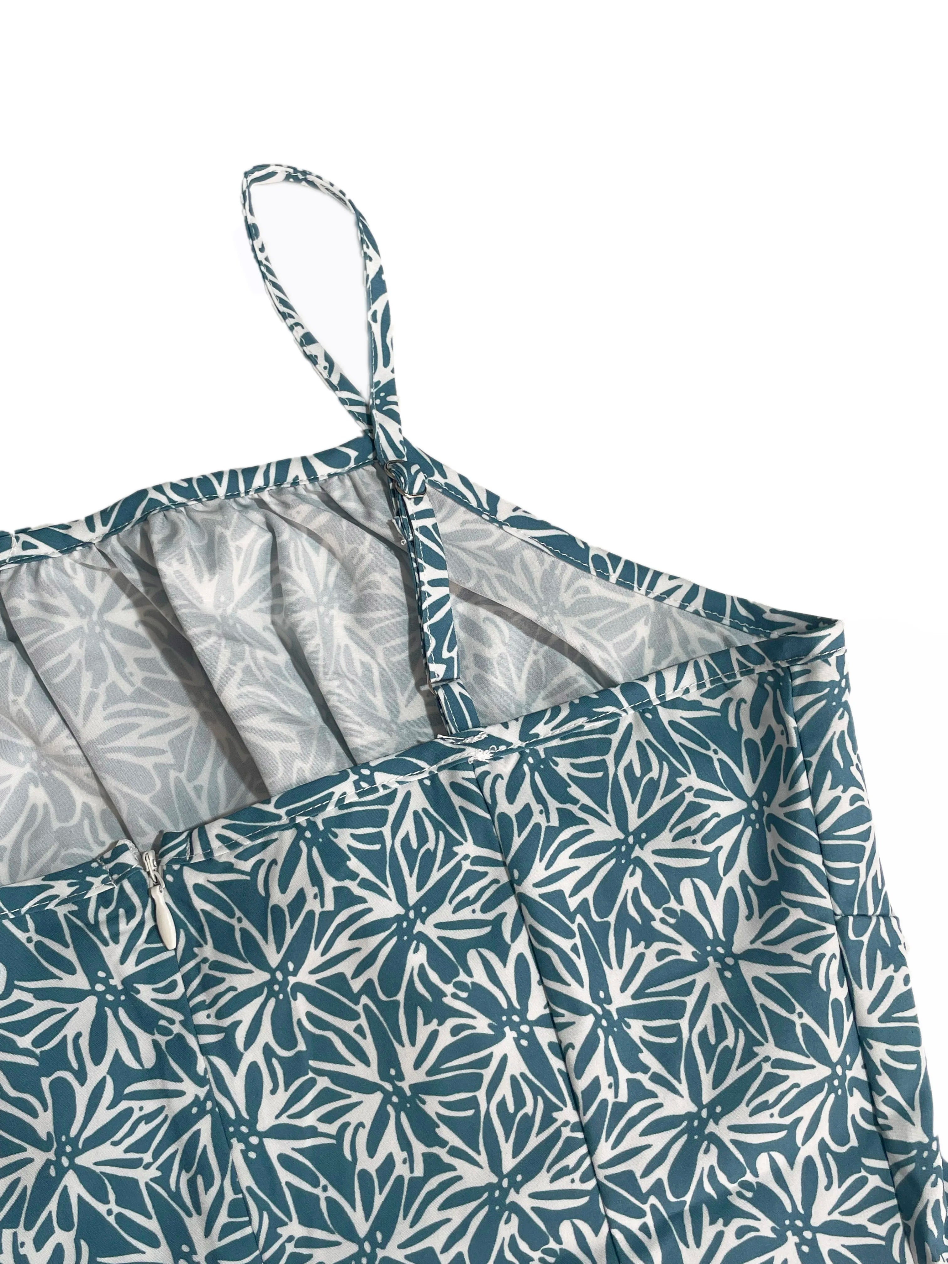 Floral Strappy Dress with Gathered Bust & Thigh Slit – Sexy Summer Dress